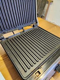 Condizioni: Usato, perfettamente funzionante, pulito, le piastre antiaderenti hanno minimi segni d’uso ma nulla che comprometta la performance.