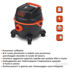 Bidone aspiratutto 3 in 1: aspirazione solidi, aspirazione liquidi, funzione soffiante