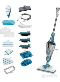 Steam-Mop Black and Decker 2in1 con testa triangolare estraibile Lift and Reach ti permette di mantenere la tua casa pulita senza l'utilizzo di detergenti grazie alla forza naturale del vapore. Il vapore elimina fino al 99.9% di germi e batteri lasciando la tua casa pulita ed igienizzata, ottima per chi ha bimbi piccoli o animali. Grazie al generatore di vapore portatile e alla vasta gamma di accessori puoi igienizzare ogni superficie della tua casa. E' pronta all'uso in meno di 15 secondi e sprigiona un flusso potente e continuo di vapore per una pulizia profonda, e non è necessario asciugare il pavimento - il vapore evapora in qualche secondo lasciando tutte le superfici della tua casa pulite ed asciutte. Accessori inclusi: tubo flessibile, 1 panno in microfibra per tutti i pavimenti, 2 panni per pavimenti delicati, 1 panno lavapavimenti PET, 1 panno triangolare, 2 panni SteaMitt in microfibra, 1 panno SteaMitt PET, accessorio per rinfrescare i tappeti, accessorio con 3 spazzoline intercambiabili ed extra getto di vapore, testa lavavetri con spugna raccogli gocce, 1 panno azzurro per rinfrescare i tessuti