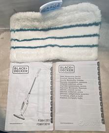 N.B: nuova , usata con il panno solo una volta , gli altri accessori sono nuovi e mai usati. Marchio BLACK+DECKER Caratteristica speciale Avvolgicavo Superfici consigliate Pavimento Nome modello FSMH13E5-QS Componenti inclusi Lavavetri, panno in microfibra con velcro per il pavimento, spazzola speciale per giunti, ugello a getto di vapore rotondo di precisione, manuale utenteLavavetri, panno in microfibra con velcro per il pavimento, spazzola speciale per giunti, ugello a getto di… Mostra altro Potenza in watt 1300 watt PULIZIA POTENTE E PRIVA DI SOSTANZE CHIMICHE PER PIÙ SUPERFICI: la scopa a vapore multifunzione FSMH13E5-QS offre una pulizia rapida e senza sforzo utilizzando solo il vapore e senza bisogno di prodotti chimici aggressivi! Grazie agli accessori versatili e ad un design leggero e facile da manovrare, puoi facilmente mantenere le superfici della tua casa pulite e igienizzate per te e la tua famiglia. POTENZA DI PULIZIA ILLIMITATA: funziona con l'elettricità di rete per un uso continuo (senza limiti di batteria) , con una potenza di 1300 W , un serbatoio dell'acqua da 350 ml e un cavo da 4,8 m per una portata estesa e una rimozione delle macchie senza sforzo, anche su quelle più difficili. RISULTATI RAPIDI E IGIENICI: Si riscalda in soli 25 secondi e utilizza la forza naturale del vapore per pulire e igienizzare pavimenti e superfici, eliminando fino al 99,9% di germi e batteri, senza bisogno di prodotti chimici. KIT COMPLETO PER LA PULIZIA PROFONDA: Viene fornito con accessori essenziali tra cui un tergivetro per finestre e specchi, un panno in microfibra per pavimenti, una spazzola speciale per giunti, una spazzola rotonda di precisione e un ugello a getto di vapore per una pulizia mirata. FACILE DA USARE: Una pulizia priva di sostanze chimiche, con un design leggero e una testa girevole a 180°