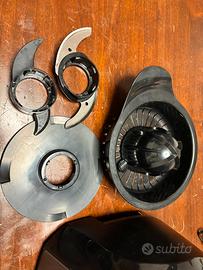 MULTIFUNZIONE; viene fornito con una ampia dotazione di 8 accessori con cui è possibile eseguire più funzioni: lama chopper, lama impastatrice, spremiagrumi, spatola, mixer e 3 macine e grattugie; ha anche una ciotola da 1,5 litri