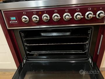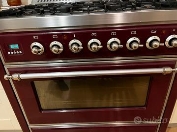 Ilve majestic originale cucina a gas con forno a gas , 6 fuochi , con cappa , pomelli silver , orologio digitale, griglie in ghisa , due luci scaldavivande, dimensioni 90x70 (profondita) e altezza 92.5