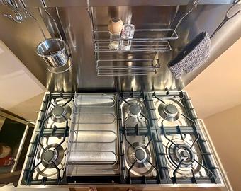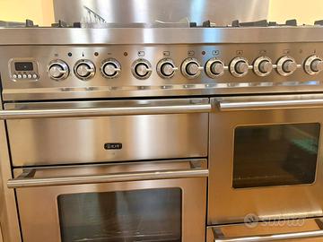 Cucina professionale a gas marca Ilve dotata di 4 fuochi, griglia, due forni e scaldavivande. Praticamente nuova, tenuta benissimo. Misure in cm: 110 x 60 x h 92