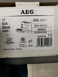 BLOCCO DIFFERENZIALE QUADRIPOLARE 4P x 63A 30mA AZIENDA AeG COD. D94 63/030 Art. 604923 Per info Tel.3477174809