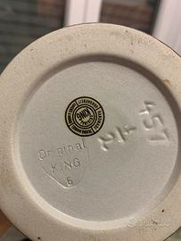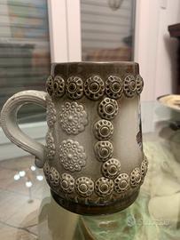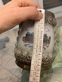 Questo oggetto è un boccale da birra in ceramica, da collezione, raffigurante il Palazzo Reale di Amsterdam. Soggetto: Palazzo Reale di Amsterdam, Paesi Bassi. Materiale: Ceramica smaltata con decorazioni in rilievo. Stile: Tradizionale europeo, spesso usato come oggetto decorativo. Marca The King Ottimo stato