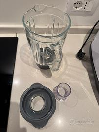 Boccale Frullatore in Vetro per impastatrice planetaria Kenwood Prospero+ (KAP60.000GY) - Ricambi Utilizzato una sola volta, pertanto i componenti sono esteticamente pari al nuovo. Tuttavia, viene venduto esclusivamente come PEZZI DI RICAMBIO a causa di un difetto tecnico: ⚠️ IMPORTANTE (Leggere bene e guardare l'ultima foto): L'attacco alla base del frullatore è rovinato. Di conseguenza, il meccanismo non fa presa correttamente e le lame non girano come dovrebbero. L'annuncio è rivolto a chi ha bisogno del boccale in vetro (integro e perfetto), del coperchio o del tappo dosatore oppure è in grado di sostituire o riparare la base in plastica danneggiata per ripristinare il funzionamento delle lame. Condizioni: • Vetro: Come nuovo. • Coperchio e guarnizioni: Come nuovi. • Meccanismo lame: Da revisionare/sostituire.