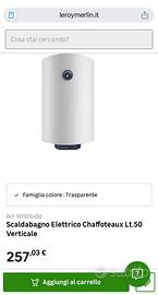 Boiler 50 litri marca Chaffoteaux, usato una settimana per sostituzione caldaia. Come nuovo e perfettamente funzionante. Vendo asseme al supporto in legno, ritiro a mano a Trieste