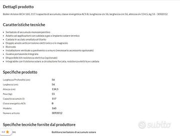Boiler Ariston 160l serbatoio accumulo verticale monoserpentino codice:3092012 Ancora imballato, vendo per errato acquisto senza possibilità di rendere il prodotto .