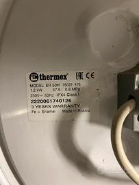 Boiler elettrico Thermex da 50 lt acquistato nel 12/2021 per euro 105. Sostituito per installazione boiler a gas. Ottime condizioni. Regalo tubazioni di raccordo. Ritiro a Torino. No spedizione.