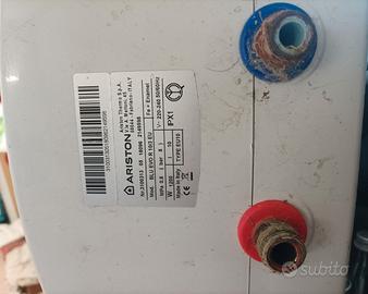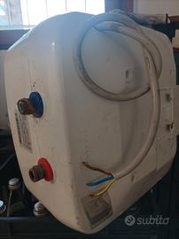 Vendo boiler per produzione acqua calda, per sottopensile, perfettamente funzionante da 15 litri marca Ariston. Dimensioni larghezza 35 cm, altezza cm. 39 e profondità cm. 28. Usato in cucina da campeggio per tre anni solo nella stagione estiva. Vendo per chiusura campeggio.