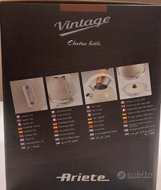 Cedo bollitore elettrico dell'Ariete modello collezione vintage 2877 colore cream/green ancora con sigillo di garanzia quindi mai aperto. Capacità 1,8 L, livello d'acqua visibile, filtro incluso, cordless con base a 360°. Scatola in condizioni molto buone. Cedo a mano presso la mia abitazione o cmq previo accordo in zona in provincia di Bergamo.