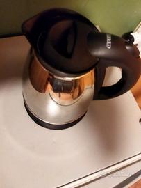 Funzionante e in buone condizioni. Corpo in acciaio inox con manico in plastica. Riscalda l’acqua rapidamente. Dotato di base e pulsante di accensione con spia luminosa. Adatto per casa o ufficio.