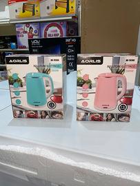 Bollitore elettrico Aorlis di colore rosa o azzurro con una capacità di 2.3 litri e una potenza di 2000W.