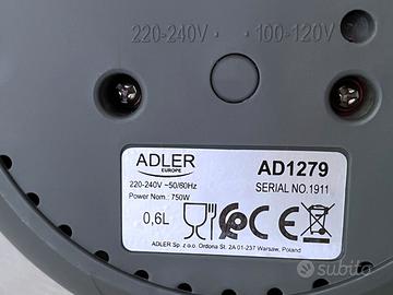 Bollitore elettrico pieghevole 0,6 L ADLER, silicone, senza BPA, bianco, 750W