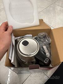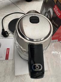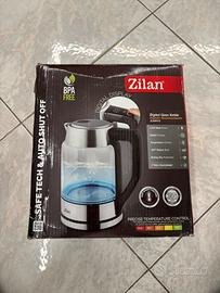 Il bollitore che vedi è lo Zilan ZLN8955 Digital Glass Kettle, un modello da 2200 Watt con corpo in vetro borosilicato e controlli digitali sull'impugnatura. Ecco le istruzioni principali per utilizzarlo al meglio: Funzioni e Comandi Il pannello digitale sull'impugnatura permette di gestire diverse impostazioni: Accensione e Bollitura Standard: Premendo brevemente il tasto di accensione, il bollitore si avvia e porta l'acqua a 100°C. Regolazione Temperatura: Puoi selezionare temperature specifiche tra 40°C, 60°C, 80°C, 90°C e 100°C. Questa funzione è ideale per diversi tipi di bevande (ad esempio, 80°C per il tè verde). Funzione Keep Warm (Mantenimento Caldo): Tenendo premuto il tasto per circa 3 secondi, si attiva la funzione che mantiene l'acqua alla temperatura scelta per 2 ore. L'indicatore luminoso rimarrà acceso per segnalare l'attività. Funzione Purificazione: Una pressione specifica (spesso indicata con un'icona dedicata o sequenza) permette di far bollire l'acqua per 3 minuti consecutivi per purificarla ulteriormente. Caratteristiche di Sicurezza Protezione "Boil-Dry": Il dispositivo si spegne automaticamente se viene acceso senza acqua all'interno. Spegnimento Automatico: Una volta raggiunta la temperatura impostata, il bollitore emette un segnale acustico ("Di") e interrompe il riscaldamento. Base a 360°: Puoi riposizionare il bollitore sulla base da qualsiasi angolazione.