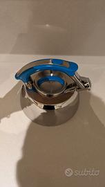 Bollitore Ghibli con fischio realizzato in acciaio inox con manico di colore blu. Adatto anche per piani ad induzione. Capienza 2,5 litri