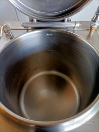 Bollitore professionale a fiamma indiretta COD. prodotto 256 Bollitore professionale a fiamma indiretta alimentato a Gas o Metano, con capacità 100 litri, ideale per lavorazioni alimentari professionali come preparazioni di creme, salse, marmellate, miele, cioccolato e altri prodotti che richiedono una cottura uniforme e controllata. Macchinario robusto e affidabile, adatto per laboratori artigianali, gastronomie, pasticcerie e piccole industrie alimentari. ✅ Caratteristiche principali: • Alimentazione: Gas o Metano • Sistema di riscaldamento a fiamma indiretta • Capacità: 100 litri • Struttura professionale e robusta • Costruzione in acciaio inox • Ideale per lavorazioni alimentari che richiedono calore uniforme • Macchinario usato revisionata 📏 Dimensioni: • Larghezza: 80 cm • Profondità: 90 cm 💶 Prezzo: 1.800 euro 📍 Disponibile presso la nostra sede di Torano Castello (CS) 🚚 Spedizione in tutta Italia (prezzo da concordare) 📞 Per info chiama o scrivi su WhatsApp: TEL. +39 351 409 0001