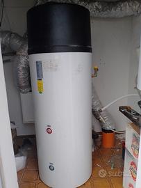 vendo scaldabagno a pompa di calore da 300 litri Emmeti mod. EE300ES, utilizzabile come puffer/volano termico con sorgente esterna come termocamino, solare termico o pdc tramite gli attacchi dedicati, il compressore installato a bordo è in corto, se lo si fa sostituire da un frigorista si può anche usare da solo senza altre sorgenti esterne, è dotato anche di resistenza elettrica da 2kw, smontato perchè ho un impianto fotovoltaico imponente con il quale gestisco un classico scaldabagno economico, sostituiti regolarmente di anodi annualmente, lo vendo a 250 euro, ovviamente date le dimensioni non è prevista la spedizione, contattatemi per ulteriori info