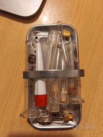 Sterilizzatore anni 70 in acciaio inox 18 8, completo di tutte le parti, comprese siringhe in vetro ed aghi riutilizzabili, facente parte del kit