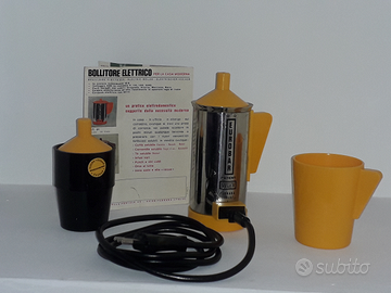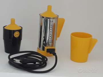 Bollitore elettrico Eurobar, vintage, marca Velox , in acciaio inossidabile 18/8 , voltaggio universale, con parti isolanti color aragosta, caldaia endotermica in lega di rame e con termostato. Un elettrodomestico che garantisce , con i suoi componenti, la totale autonomia per la preparazione istantanea di: caffè, te, camomilla solubile; adatto per chi viaggia, in ufficio, in camping, in albergo e in casa, ovunque si trovi una presa di corrente.