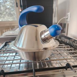 Bellissimo bollitore a fischietto IKEA originale dei primi anni 2000. Un pezzo di design iconico (modello "Sea Turtle"), perfetto per collezionisti o per dare un tocco vintage alla cucina.