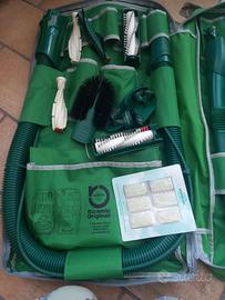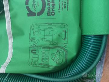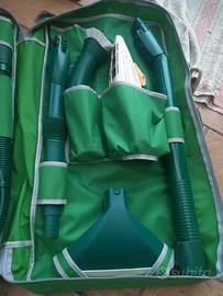 Grande borsa con molti accessori per Folletto modello 140 + piede aspirapolvere e piede lucidatrice. Mai usati La spedizione è da valutare a parte per le dimensioni della borsa che è lunga più di cm 70 (contiene tubo rigido) Il peso totale è di ca 17 KG