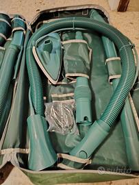 Borsa accessori Folletto Vk 140 dotata di tutto il materiale presente nelle fotografie.Le condizioni sono ottime.A richiesta posso inviare altre foto dettagliate.Accessori ideali per Folletto Vk 130 131 135 136 140 150 e modelli serie precedente tipo VK 119 120 121 122 con adattatore.