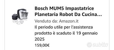 Bosch impastatrice usata poche volte . Con ciotola aggiuntiva . Non ho più libretto né ricettario . Vendo a 120€ non trattabili perché è nuova in più solo la ciottola costa parecchio . Non spedisco . Torino(Montanaro). Otilia80t@gmail.com