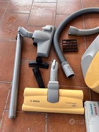 Vendo aspirapolvere Bosch Logo Pro Parquet 3 da 2000W, funzionante e completo di tutti gli accessori originali e una confezione sacchetti originali Bosch/Siemens MegaFilt SuperFEX Tipo G nuovi e sigillati.
