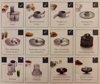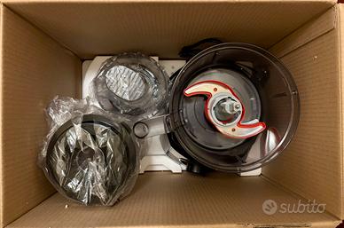 In dotazione Ciotola in plastica trasparente dalla capacità di 2.3 l con coperchio provvisto di imbuto ed accessori che possono essere lavati in lavastoviglie (visualizzabili nell immagina). Il prodotto è perfettamente funzuonante; unico difetto, che non ne compomette l utilizzo, è rappresentato da una piccola spaccatura nella plastica del coperchio inbuto, come da ultima foto.