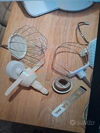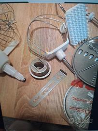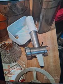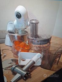 Robot dotato di planetaria in acciaio inossidabile con coperchio, spremiagrumi, disco per grattugia, per affettare, cubettatrice, frusta, impastatrice mixer, stampo per biscotti e tritacarne.