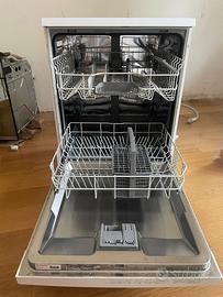 SMS25AW01J - Bosch Serie 2 Lavastoviglie a libera installazione, 12 Coperti, Classe Energetica A++, Bianco. In ottime condizioni, ha circa 4 anni di utilizzo. Ritiro a Roma in zona Gemelli, piano terra. * Asciugatura Extra: la funzione speciale per le stoviglie difficili da asciugare; AquaStop: sistema di protezione antiallagamento * Sistema Protezione Cristalli: lavaggio e asciugatura delicata di piatti e bicchieri; EcoSilence Drive: motore efficiente, veloce e silenzioso, ottimizzata, riscaldamento più rapido e prestazioni della pompa superiori per una maggiore circolazione dell'acqua * EcoDosage: grazie all'effettivo scioglimento del detergente, EcoDosage garantisce risultati ottimali, anche in termini di pulizia e lavaggio silenzioso, il detergente fuoriesce dal relativo dispenser riversandosi in uno speciale contenitore sul cestello superiore in cui si scioglie completamente.