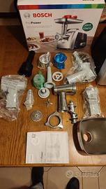 Grazie alla sua ampia gamma di funzioni e alla vasta serie di accessori, come il disco per grattugiare o la trafila per biscotti, puoi utilizzare il tritacarne Bosch in qualsiasi occasione.