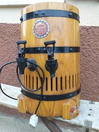 Come da titolo e foto propongo una bellissima botticella-tinello in legno massello, spillatore vino sfuso o birra, con due serbatoi coimbientati indipendenti in acciaio inox da 5 litri ciascuno con motore frigo.