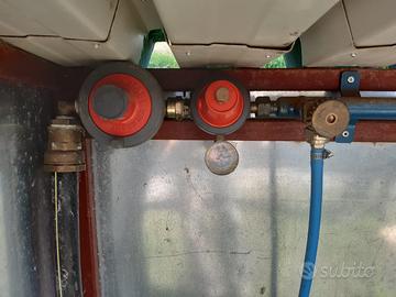 BOX contenitore in acciaio per 3 bombole gpl da 25 kg, completo di riduttore di pressione, manometro e valvole per ogni singola bombola. Dimensioni 127 x 45, h 115 cm. Vendo Euro 150. Tel. 335/1302257