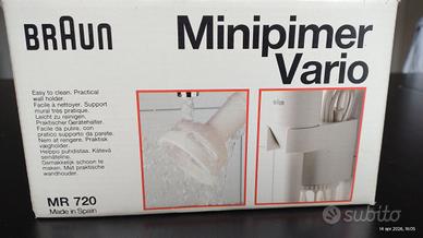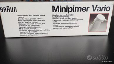 Frullatore Braun Minipimer MAI USATO completo di tutti gli accessori nella scatola originale.