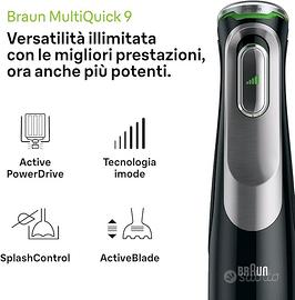 Braun MQ9187XLI MultiQuick9 Minipimer, Frullatore ad Immersione dotato di frusta a filo, Tritatutto da 500ml,Robot da cucina XL da 3,2L e Schiacciapatate, 1200watt, No schizzi Tecnologia SplashControl con Accessorio Robot