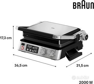 Griglia Elettrica con Controllo Elettronico, 2 Termostati Indipendenti, 3 Posizioni di Cottura, Piastre Lavabili in Lavastoviglie, 2000 W, Nero/Acciaio Inossidabile