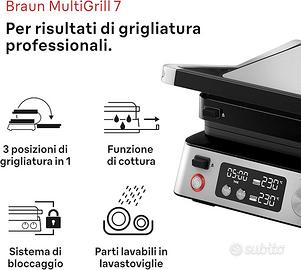 3 POSIZIONI DI COTTURA: regola la posizione della piastra; aperta, per un'ampia area di cottura; forno, per le fritture; a contatto, per una cottura rapida, per panini croccanti