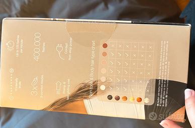 Sistema di depilazione a luce pulsata, mai usato, ancora nella confezione originale (ci sono ancora i sigilli). Presenta una testina di precisione per le aree più sensibili. Inoltre nella scatola ci sono un rasoio, la testina per le aree più grandi, il caricatore e una borsa dove mettere tutto all'interno, con una fantasia colore oro e bianco (ormai la borsa con questa fantasia non la fanno più).