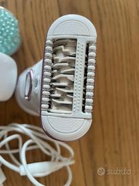 Epilatore Donna ~Senza Fili– Con Rasoio, e kur per Pulizia Visi ed Esfoliazione Corpo. Si puo usare anche sotto la doccia, questo permette di sentire meno dolore. Testina molto ampia per il corpo e riduttore per il vuso e parti intime. Luce led che permette di vedere bene anche i peli più sottili e chiari. Facile da pulite. Quasi nuovo .