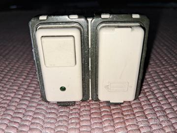 Dimmer elettronico marca Bticino, serie Magic, articolo 5352N, resistivo e induttivo da 60 a 500W, nuovo ma senza confezione, occupa 2 posti in una scatola 503. E' possibile quindi regolare luci tradizionali a filamento o alogene, ventilatori, luci alimentate da trasformatori elettromeccanici. Ha integrato un fusibile di protezione sostituibile aprendo lo sportellino frontale posto a destra del pulsante. - regolazione in aumento o in diminuzione tramite una pressione continua sul pulsante di comando. - spegnimento totale (o riaccensione al livello prescelto con la regolazione) tramite breve pressione sul pulsante - Vi e' inoltre la possibilita' di collegare dei pulsanti normali in altri punti per poter accendere-spegnere-regolare la luce da piu' posizioni della stanza.