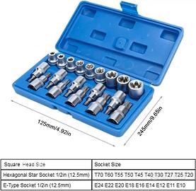 19 BUSSOLE TORX ACCIAIO CR-V ATTACCO 1/2" MASCHIO da T20 a T70 FEMMINA E10 a E24
