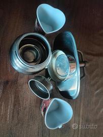 Caffettiera vintage a due tazze, con le due tazze e la zuccheriera comprese.