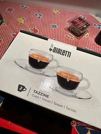 Set Bialetti composto da una caffettiera Mini Express per 2 tazze e due tazzine con piattini.