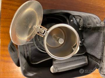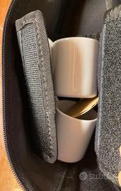 Vendo set da viaggio per la preparazione del caffè espresso firmato Alessi, modello RS07 (2002), versione elettrificata della storica caffettiera 9090 a tre tazze, disegnata da Richard Sapper.