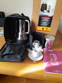 Caffettiera 9090 Alessi presente al M.O.M.A di New York. Set completo da viaggio composto da: 2 tazzine, 2 piattini, 2 cucchiaini e contenitore per il viaggio. Mai usata, praticamente nuova.