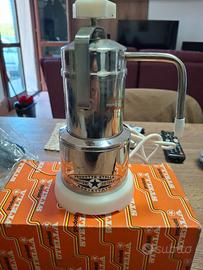 Un vero gioiello del design industriale italiano (Modernariato), perfetto per collezionisti o per dare un tocco retro elegante alla propria cucina. Questo modello è caratterizzato dal celebre pomello a forma di stella e dalla struttura in robusto acciaio inossidabile 18/10.
