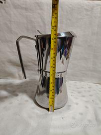 caffettiera Giannini modello Giannina progettata da Carlo Giannini nel 1968, questa caffettiera si distingue per il suo particolare sistema di chiusura a scatto che avviene ruotando il manico fino a farlo agganciare alla base. Realizzata internamente in acciaio inox 18/10 lucido resistente e adatta a qualsiasi tipo di fornello. Dotata di filtro riduttore che permette di preparare una quantità ridotta di caffè. capacità 12/9 con riduttore. in ottime condizioni.