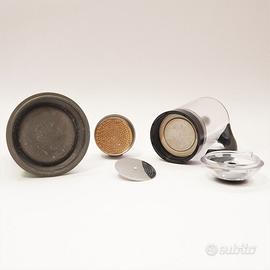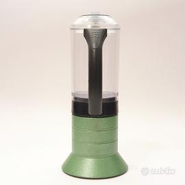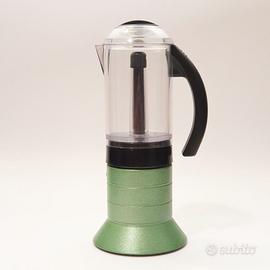 Questa particolarissima caffettiera è stata progettata da Pino Spagnolo, architetto, presso il suo studio di design Pino Spagnolo Design Snc a Torino, in Italia. È stato realizzato da Frederico Guarneri su disegno di Spagnolo presso il Biesse Group Italia nel 1994. Il Victoria and Albert Museum di Londra espone permanentemente nella sua collezione la caffettiera insieme a tredici fogli di disegni di progettazione e due modelli in legno. La caffettiera è stata realizzata con il bollitore in alluminio, mentre la parte superiore è realizzato in plastica trasparente (Perspex o Plexiglas). Il manico è stato realizzato anch'esso con plastica robusta nera. Lo stato di conservazione è ottimo, non è mai stata utilizzata. Da segnalare solamente alcune tracce di ossidazione dell'alluminio sotto la base della caffettiera. Stupendo oggetto da esposizione, particolarmente indicato per i collezionisti e gli amanti del design. Dimensioni: altezza 28cm / 11" diametro della base di appoggio 12cm / 4.7" diametro del corpo 8,5cm / 3.3" Tazze 6 Per maggiori informazioni o foto, contattatemi
